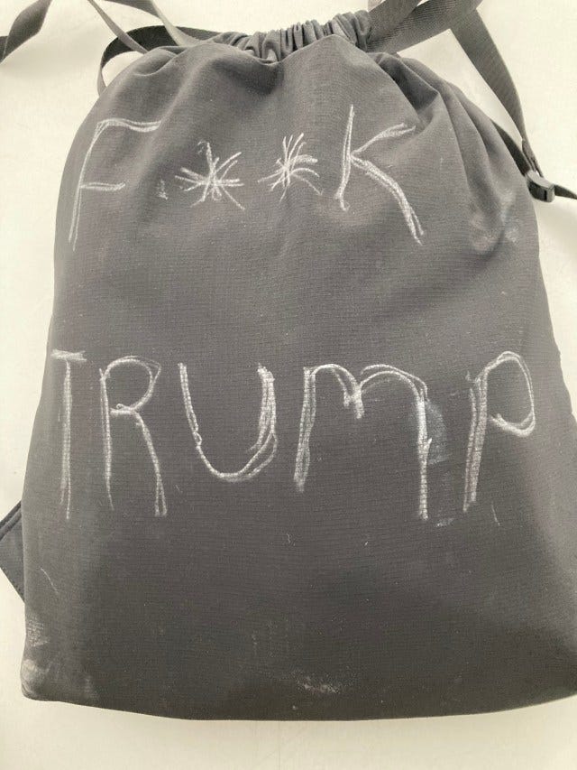 Americans of all shapes, sizes, colors and hometowns have approached freely. More than not, these exchanges have led to emotional conversations in which we connect almost instantly over the mutual grief, sorrow and rage we feel. The bag has opened a door to the Situation Room slash psychiatrist’s couch in which decent Americans have been watching a horrific tyrant commit unspeakable travesties in our country’s name. Coming from a city in which everyone spills secrets and offers uncensored opinions to complete strangers, it pleases me that many have told me it is liberating for them to see our opinion expressed openly and without sugarcoating. Anger and judgment they share, but often in silence.